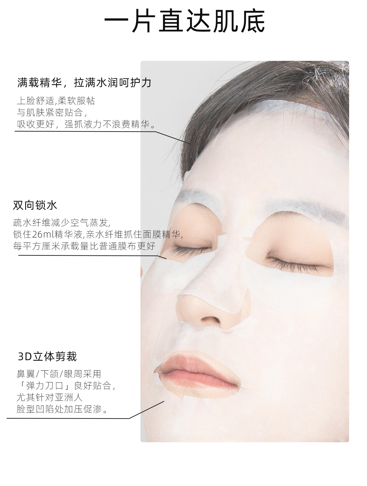 2. 深层补水,长效保湿 – 高效补水因子渗透肌底,快速缓解干燥,提升肌肤含水量,让肌肤水润饱满。